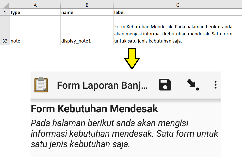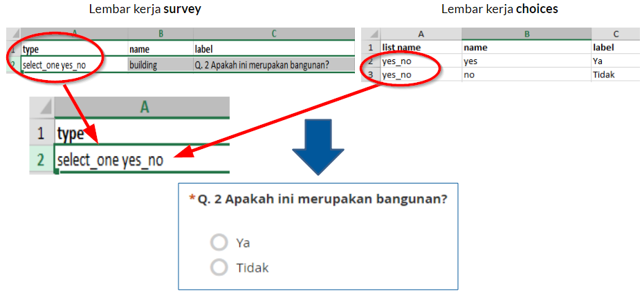 XLSForm will then be converted to XForm, an open standard format, where the format allows you to create a form with very complex functions, such as multilevel questions, into a format that has been recognized by both data collection tools or in the form of sites on the internet, as well as in mobile devices.